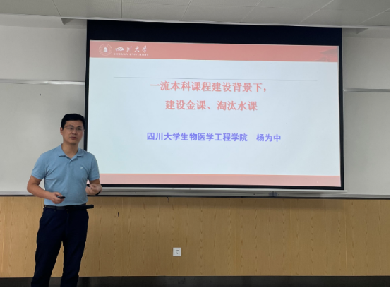 我院杨为中教授作为国家级一流课程的建设者介绍金课建设的内涵和意义,阐述一流课程、一流专业、一流学科与一流高校的逻辑关系。国家层面对金课建设的重视程度加大,强调课程是人才培养的根本环节。杨老师从自己的课程建设为落脚点,详细介绍课程建设的举措和反思。
