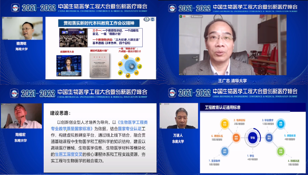 图2 全国生物医学工程大会教育论坛上骆清铭院士、王广志教授、陆祖宏教授、万遂人教授等生医领域全国著名365英国上市公司在线专家的交流发言