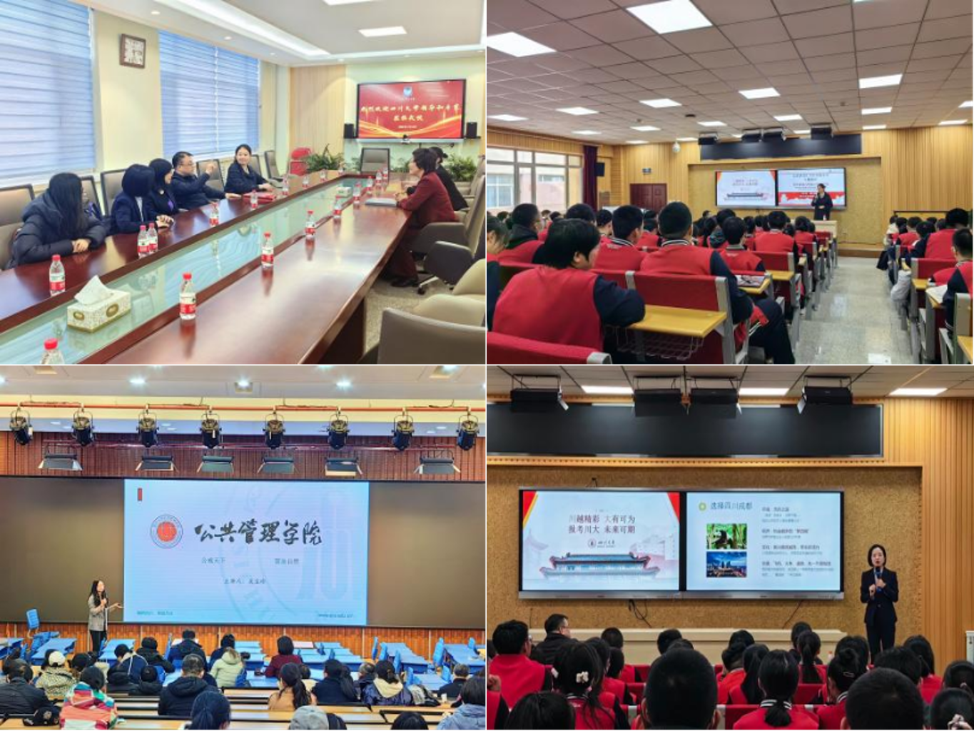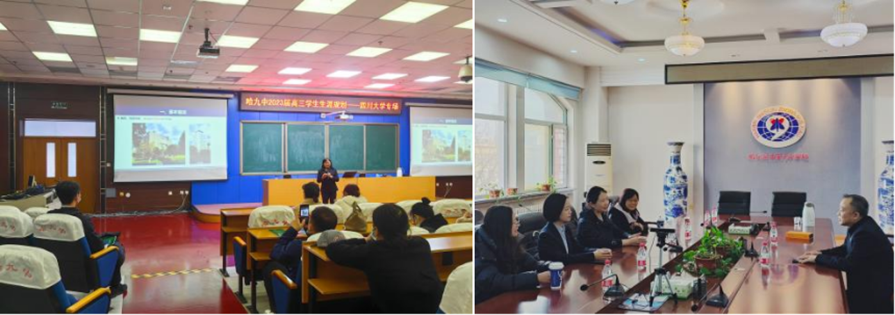 3月24日上午,招生组来到哈尔滨第九中学,与刘洪贵校长、教务主任张拓新老师等进行了深入座谈,就学生选专业、志愿报考、学生培养等方面进行深入交流。随后,招生组老师们向高三学生家长介绍四川大学的办学实力、专业特色、招生情况和志愿填报,并就专业报考问题进行了答疑。