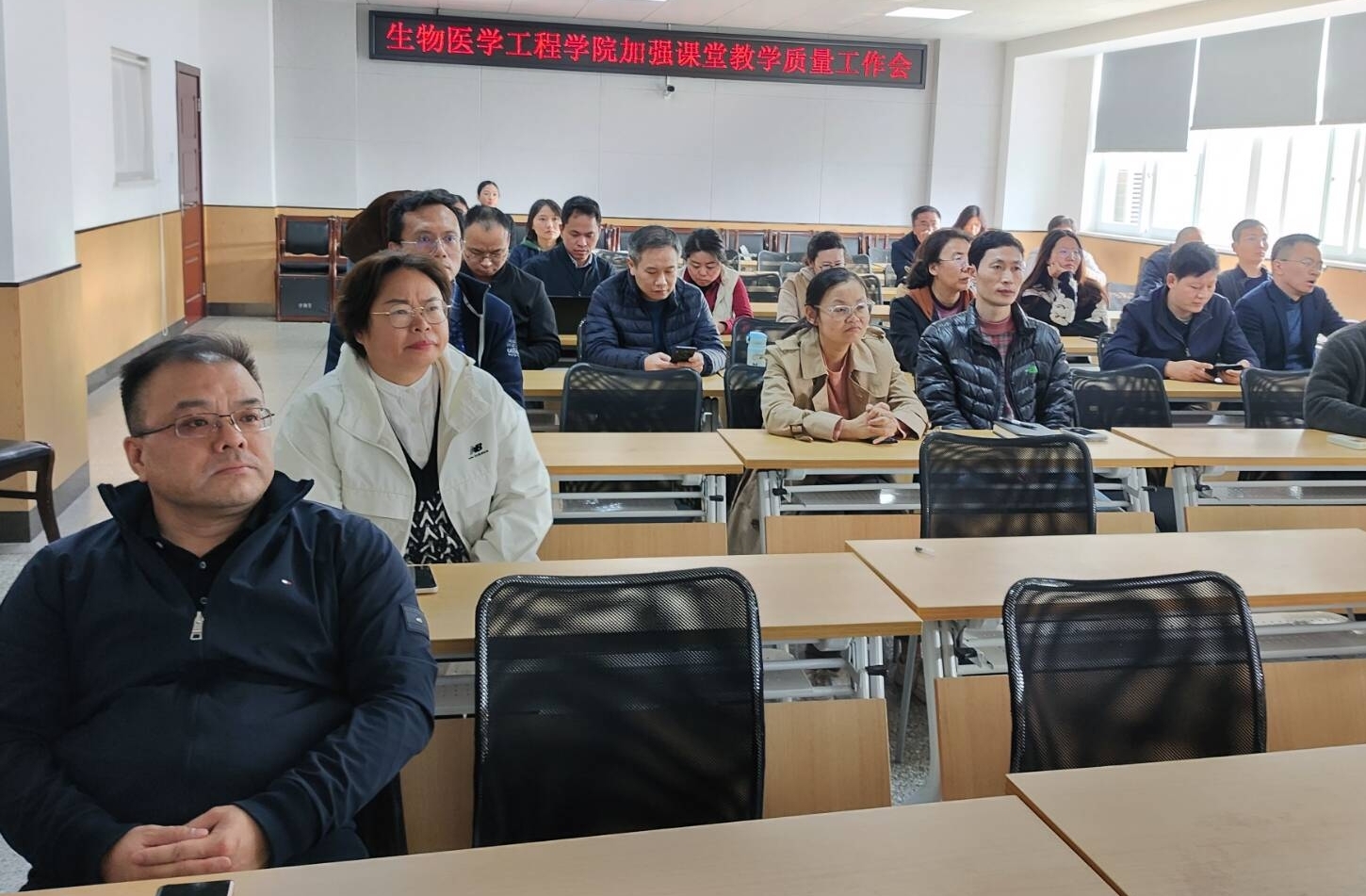 2023年11月28日,学院/中心召开 “进一步加强课堂教学质量”工作会议,全体研究生和本科生授课教师参加会议,会议由林江莉副院长主持。
