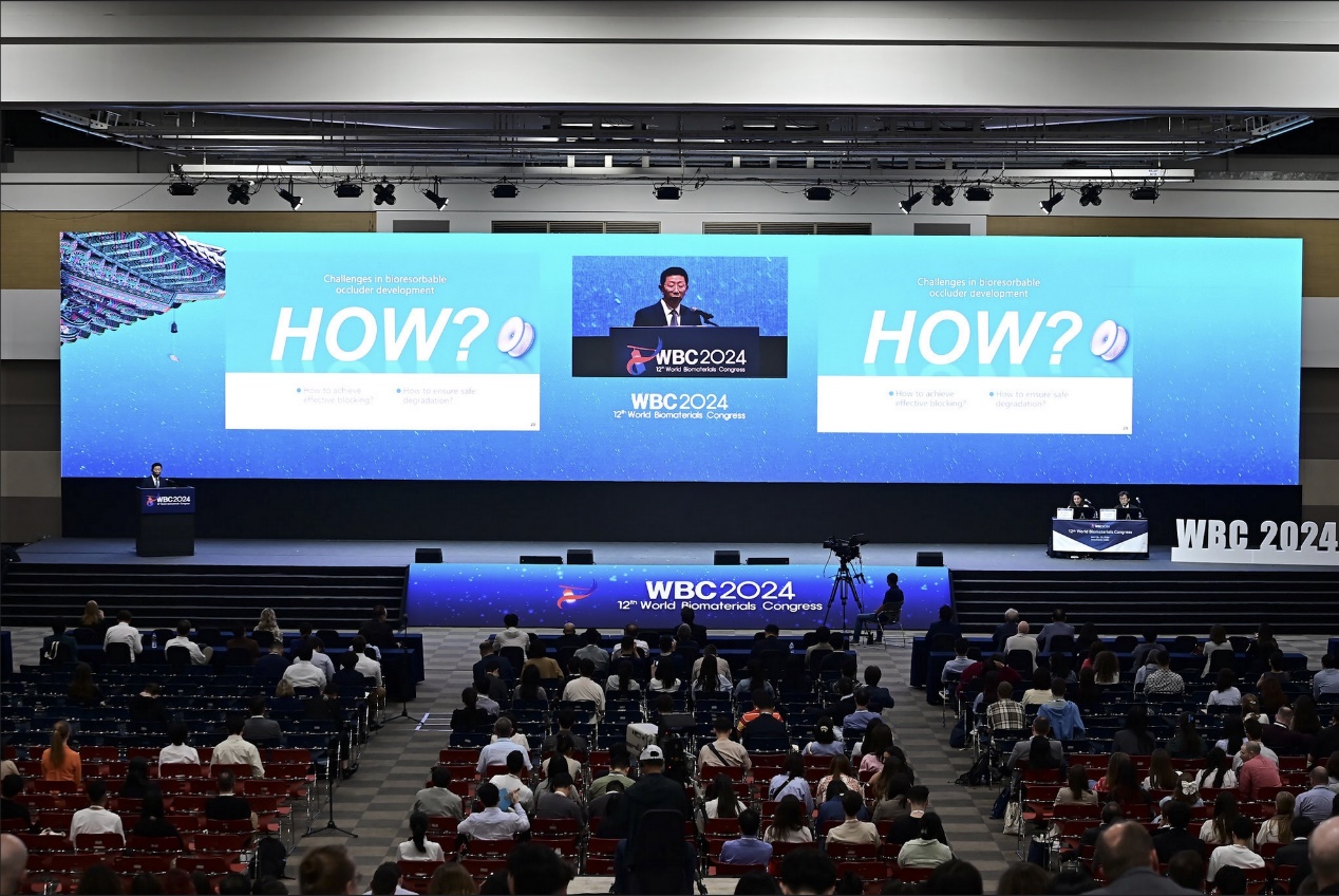 5月27-31日,第十二次世界生物材料大会(WBC 2024)在韩国大邱成功举办,来自全球生物材料领域的顶级专家、知名学者、青年科学家及产业专家等4000余人参加了会议。世界生物材料大会始于1980年,每四年举行一次,被称为全球生物材料界的“奥运会”。我院王云兵教授于当地时间5月28日下午作了题为“微创介入心血管材料及器械(Minimally Invasive Interventional Cardiovascular Materials and Devices)”的大会报告。王云兵教授是本次大会邀请的七位大会报告人中唯一受邀的华人学者。
