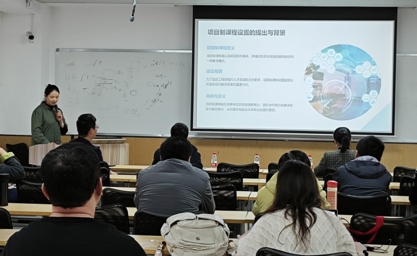 活动伊始,林江莉教授先介绍了参加本次活动的主要嘉宾,接着对项目制课程和数字化赋能对教学变革的发展趋势进行深入阐述,她分享了如何将项目制教学法融入课程设计,以及数字化技术如何为教学活动提供新的动力和可能性。