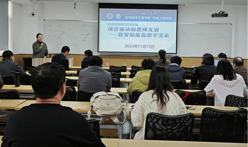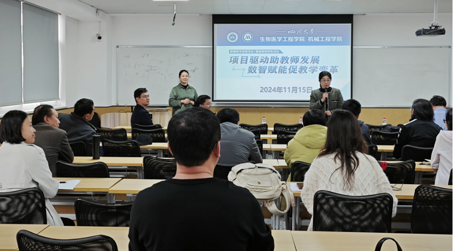 11月15日下午,我院联合机械工程学院在望江校区生物材料楼606联合举办主题为“项目驱动助教师发展,数智赋能促教学变革”的教师教学发展活动。此次活动旨在探讨项目制课程和数字化技术在教学领域的应用,以及如何通过这些手段促进教学方法的创新和教师专业发展。我院专业负责人尹光福、国家中心副主任樊渝江、生医系主任杨为中、机械工程学院副院长余德平、副院长刘晓宇及相关工作人员和老师代表参加活动。活动由学院副院长林江莉主持。
