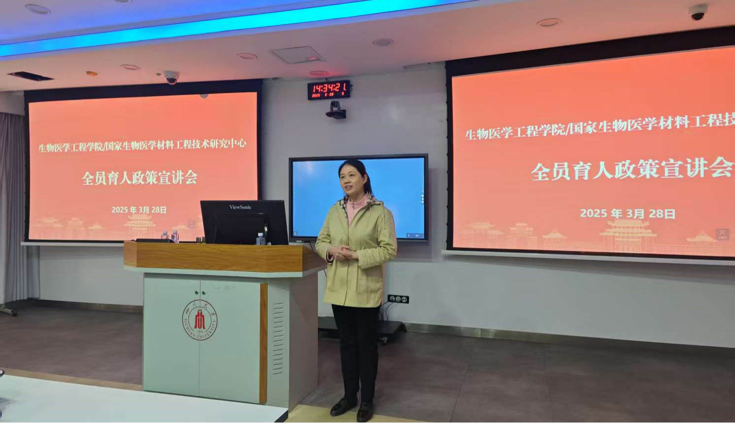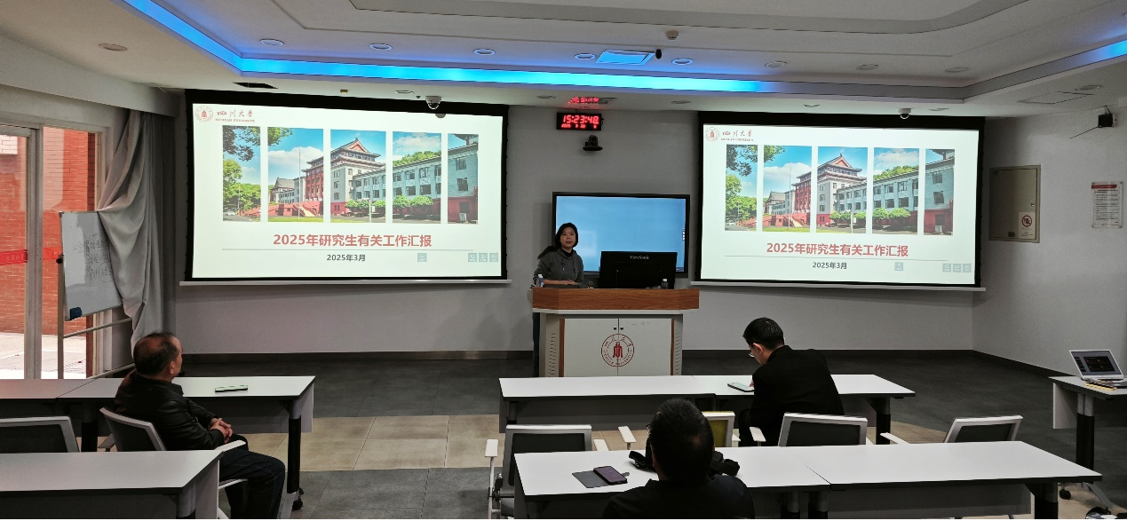 随后,国家生物材料中心副主任范红松围绕研究生培养有关情况进行了详细汇报。她指出,研究生教育是学院人才培养体系中的重要组成部分,是提升学院核心竞争力的关键环节。本科教育是研究生教育的基础,也是研究生生源的有力保障,加强 “三全育人”、“五育并举、“教辅协同”,加快构建一体化育人体系具有十分迫切和重要的意义。近年来,学院不断优化研究生招生选拔机制,严格把控培养质量,加强导师队伍建设,为研究生的学术成长和职业发展提供了坚实保障。