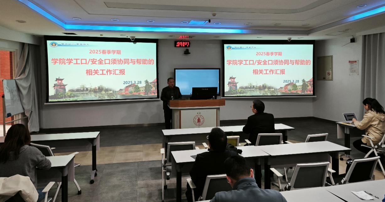 田单副书记就学院学工/安全协同相关工作进行了汇报。他介绍了学院在学生思想政治教育、学风建设、心理健康教育、深造就业等方面的工作举措和成效,希望全院教职工积极协同,群策群力,推动学院学工工作再上新台阶。他强调学生工作是全员育人体系中的重要一环,而安全稳定则是学院一切工作的基础保障。