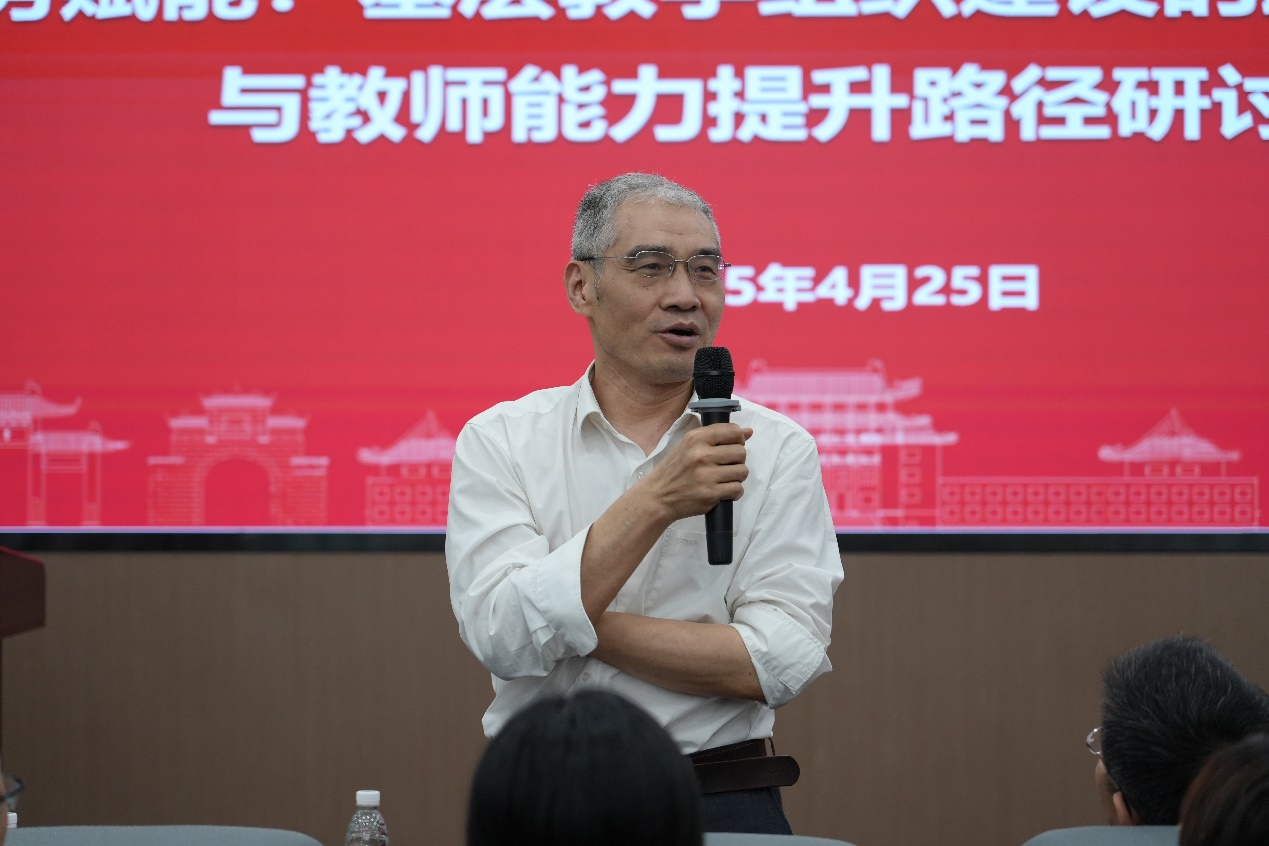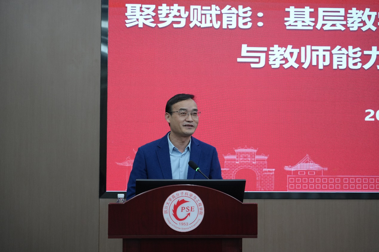 高分子科学与工程学院党委书记牟德富参加研讨会并致辞,他强调了基层教学组织建设对本科教育改革的基石性作用,并表示此次活动旨在凝聚三院合力,依托历史渊源深厚、根基稳固的合作传统,以教学研讨为契机,探索基层教学组织建设和本科教育创新模式,全方位提升人才培养质量,为教学改革注入强劲动力,推动学院本科教育向更高层次迈进。