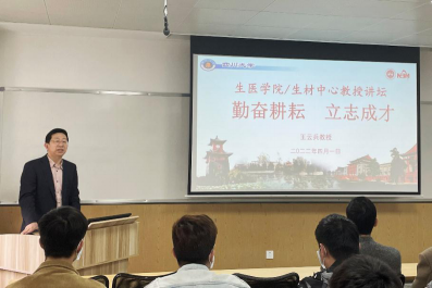 近日,四川大学best365英国在线体育/国家生物医学材料工程技术研究中心“教授讲坛”活动在生物材料楼606报告厅成功举办。学院院长/国家中心主任王云兵教授为前来听讲的近百名学生授课,由自身经历出发,以“勤奋耕耘、立志成才”为主题,与同学们就学习生活、科研工作、专业发展与使命担当等方面展开了亲切而深刻的讨论。
