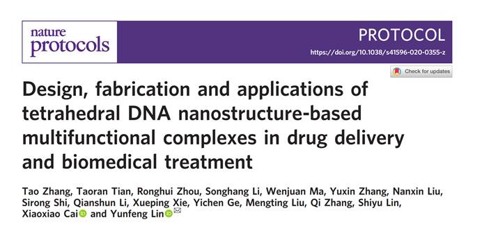 近日,我校华西口腔医学院、best365英国在线体育的林云锋教授团队,在国际前沿期刊《Nature Protocols》上发表了题为“Design, fabrication and applications of tetrahedral DNA nanostructure-based multifunctional complexes in drug delivery and biomedical treatment”的论文。四川大学为该论文的唯一单位,张陶博士后为该论文的第一作者,林云锋教授为唯一通讯作者。