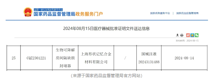 王云兵教授团队医工结合开发出全球首个获批的可降解房间隔封堵器