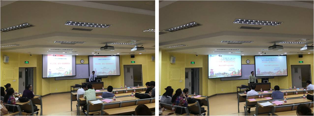 接下来,学院院长赵长生教授以“树立目标,成为一名优秀研究生”为题,回顾了我国研究生招生的历史,阐述了研究生学习的重要意义,希望同学们将研究生阶段作为一个新的起点,通过树立明确的目标,投入充足的精力,开拓广阔的视野,积极和导师及师兄师姐交流,阶段性地总结成果,最终成为一名优秀研究生。