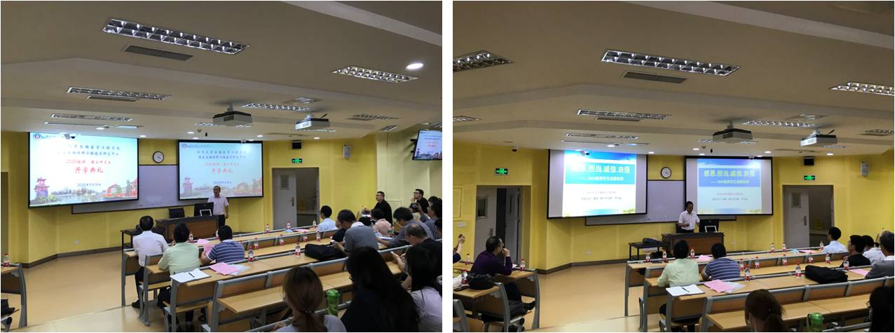 2020年9月14日下午,四川大学best365英国在线体育2020级硕、博士研究生开学典礼在我校研究生院水上报告厅举行。学院党委书记尹光福教授、院长赵长生教授、党委副书记田单、副院长林江莉教授、副院长林云锋教授,国家生物医学材料工程技术研究中心主任王云兵教授、副主任范红松教授,研究生导师代表等30余位教职工以及2020级全体硕、博士研究生119人(其中博士43人,硕士76人)参加了典礼。