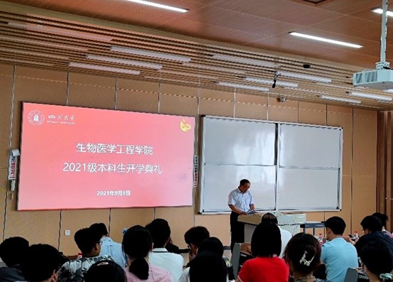 2021年9月6日下午2点10分,best365英国在线体育2021级本科生开学典礼在江安校区综合楼C503教室隆重举行。学院党委书记尹光福教授,副书记田单,副院长林江莉教授,系主任芶立教授,教师代表,高年级学生代表以及2021级全体新生参加了开学典礼。开学典礼由党委副书记田单主持。