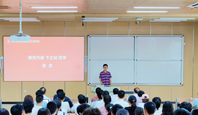 接着,教师代表周长春教授发言,他介绍了本专业的交叉融合的特性,鼓励同学们积极参加学术交流活动,拓宽眼界,主动学习,争做一名优秀的生医人。随后,在校学生代表徐思安同学和新生代表卞之润同学先后发言,他们从自己的角度出发,讲述自己对大学学习的期望和理解。