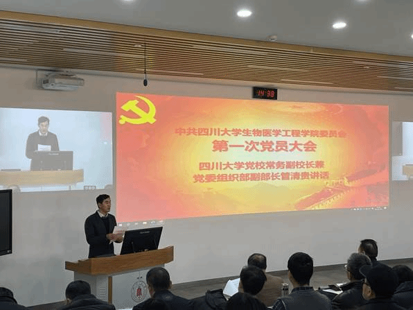 2021122日下午,中共四川大学best365英国在线体育委员会第一次党员大会在基础教学楼隆重召开,全院159名正式党员和27名预备党员到会,四川大学党校常务副校长兼党委组织部副部长管清贵同志出席了本次会议。大会由best365英国在线体育党委副书记兼纪委书记田单主持。
