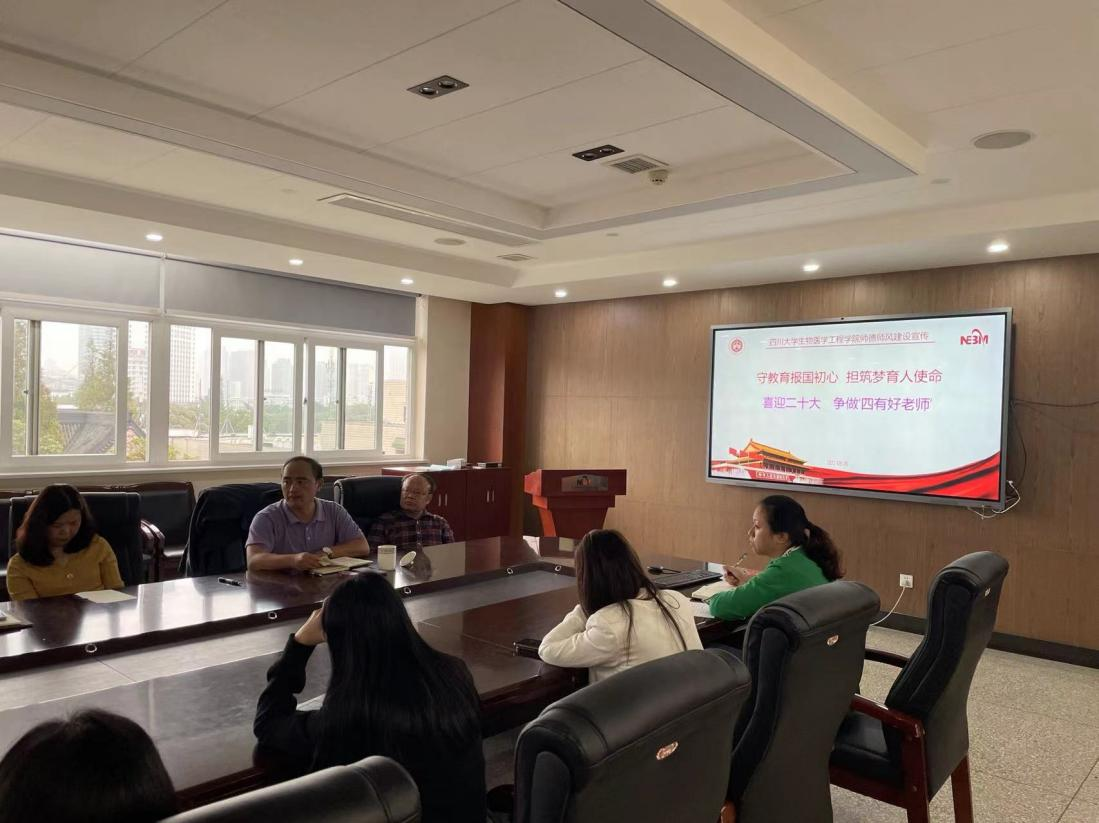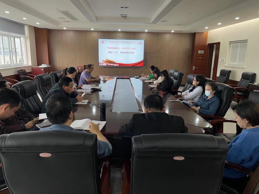 2022年9月26日下午,best365英国在线体育党委中心组扩大会议在生物材料楼611会议室举行。此次会议的主题是“守教育报国初心 担筑梦育人使命——喜迎二十大,争做四有好老师”。学院党委副书记田单同志主持了本次会议。