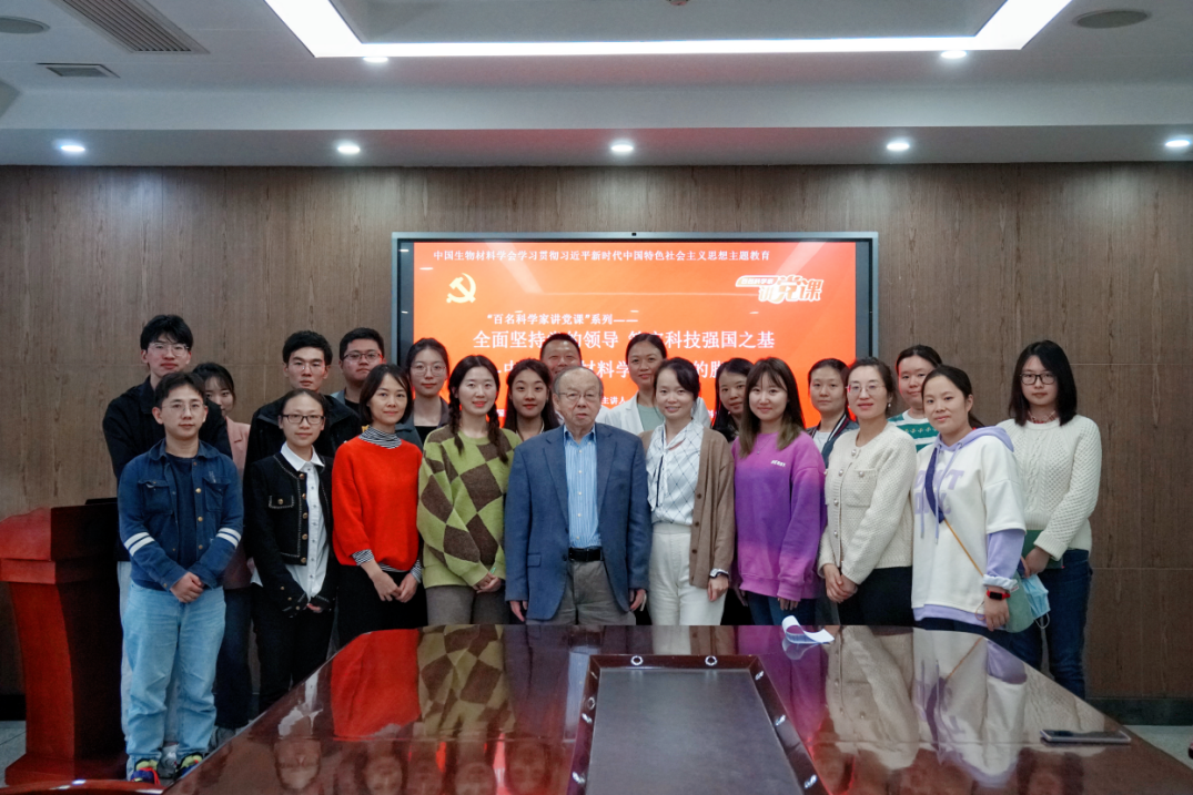 为学习贯彻习近平新时代中国特色社会主义思想,弘扬新时代科学家精神,响应中国科协科技社团党委“百名科学家讲党课”活动,11月3日,中国生物材料学会邀请学会名誉理事长、中国工程院院士、美国国家工程院外籍院士张兴栋教授为中国生物材料学会秘书处全体党员、青年干部以及best365英国在线体育硕士第二党支部、博士第二党支部党员讲授党课。