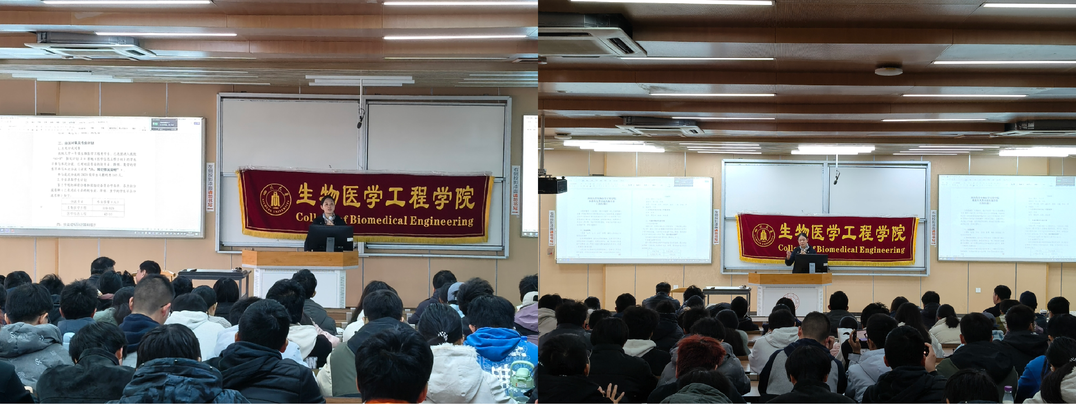 说明会上,林江莉教授介绍了学院学科特色与培养目标,并围绕“生物医学工程”与“医学信息工程”两大专业方向的课程体系、教学重点展开说明。随后,她对分流的原则、对象及专业计划、成绩计算与排序、流程等内容进行了系统解读,强调专业分流遵循“尊重学生意愿,双向选择”的基本原则。