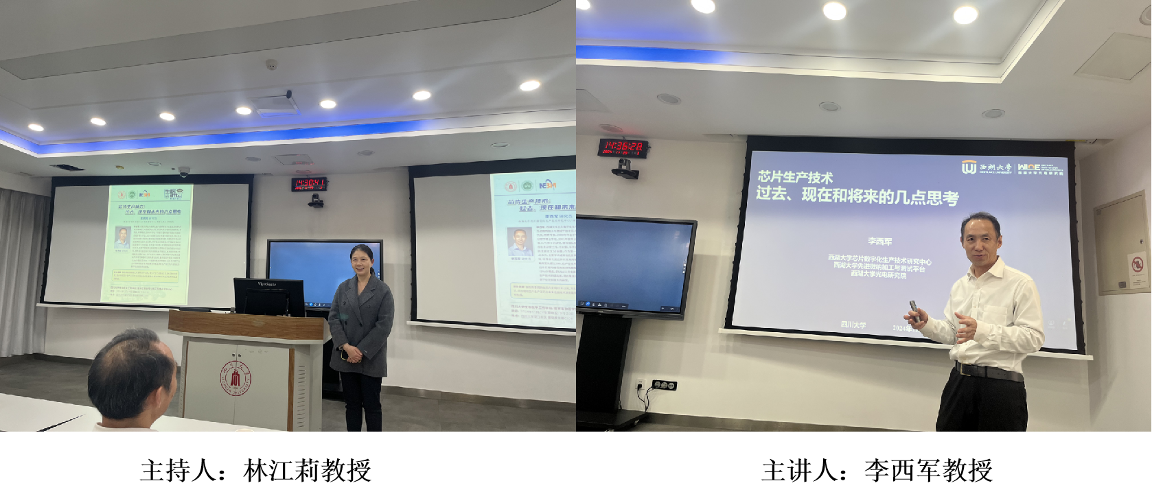 讲座由四川大学best365英国在线体育副院长林江莉教授主持,她首先介绍了李西军教授的基本情况及在芯片生产技术方面取得的一些成果。