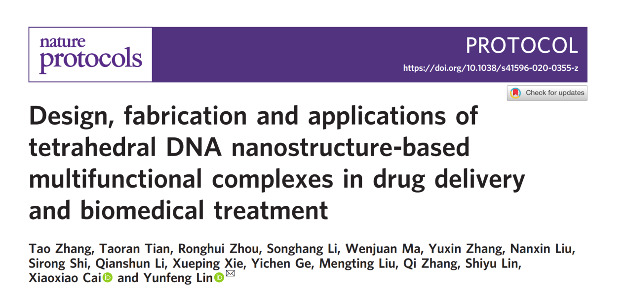 近日,我校华西口腔医学院、best365英国在线体育的林云锋教授团队,在国际前沿期刊《Nature Protocols》上发表了题为“Design, fabrication and applications of tetrahedral DNA nanostructure-based multifunctional complexes in drug delivery and biomedical treatment”的论文。四川大学为该论文的唯一单位,张陶博士后为该论文的第一作者,林云锋教授为唯一通讯作者。