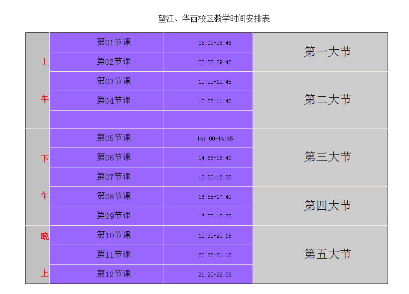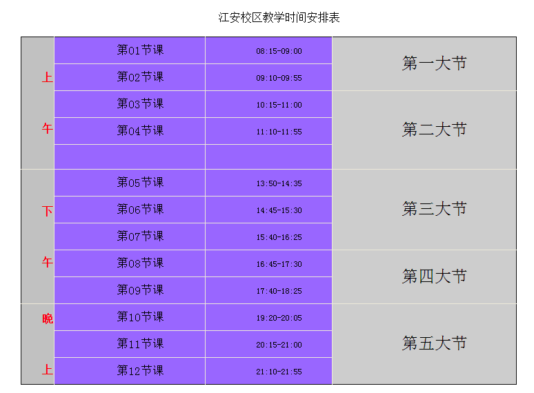 本科教学作息时间